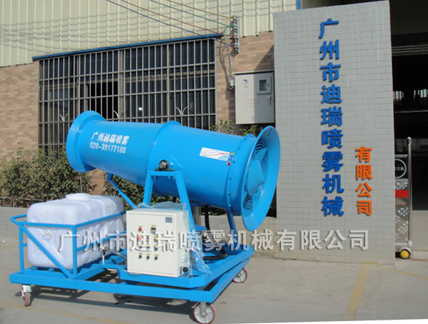 高壓噴霧風(fēng)炮的工作原理將自來(lái)水經(jīng)過(guò)專(zhuān)業(yè)凈化處理后運(yùn)用高壓設(shè)備在高壓?jiǎn)卧獌?nèi)部形成強(qiáng)大的工作壓力,通過(guò)專(zhuān)用的噴嘴形成50~150微米左右的水霧微粒, 微小的霧粒大量聚集并漂浮于空氣中形成白色云霧狀的霧氣效果不產(chǎn)生水滴,其顆粒及其細(xì)小表面張力基本上為零,能迅速吸附空氣中的灰塵顆粒形成有效的控塵, 且通過(guò)高速風(fēng)機(jī)加速后大面積擴(kuò)撒,對(duì)大型開(kāi)闊范圍的控塵降塵相當(dāng)有效;若為噴霧除臭藥液可使藥物分子隨霧粒的擴(kuò)散充分與空氣中的臭氣分子接觸并發(fā)生反應(yīng), 有效的清除臭氣廢氣。噴霧風(fēng)炮還能夠迅速吸收空氣中的熱量蒸發(fā),快速有效吸熱降低周?chē)臏囟炔⒃黾涌諝鉂駶?rùn)度。